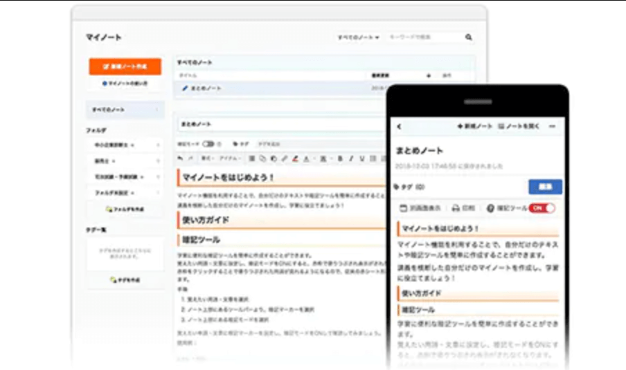マイノート機能とAI検索機能